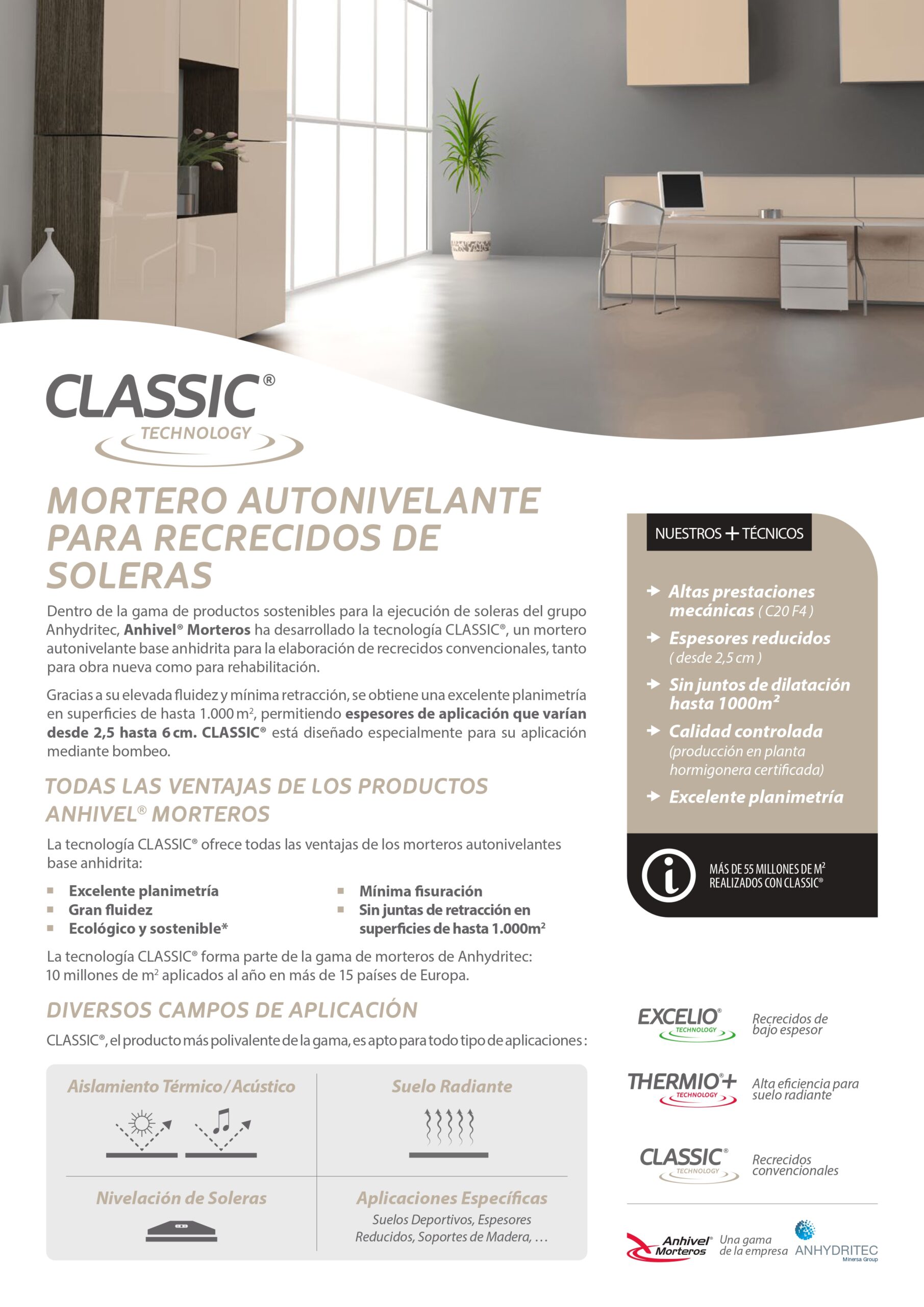 2. Mortero autonivelante base anhidrita CLASSIC® Recrecidos de 2,5cm-6cm.