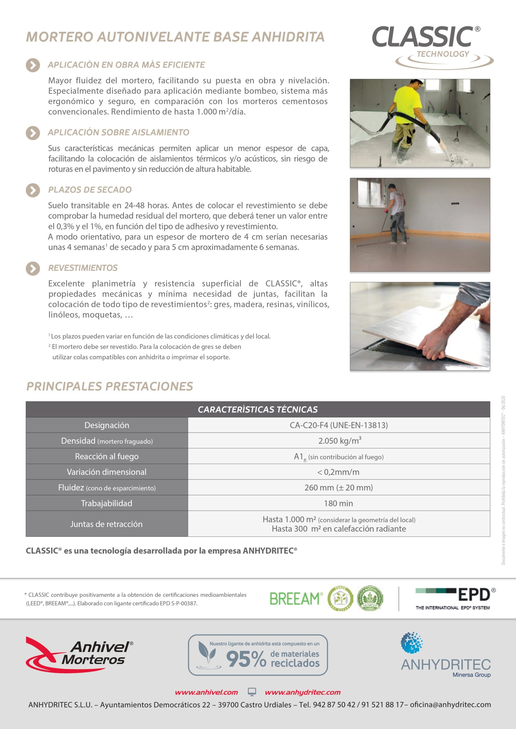 Mortero autonivelante base anhidrita CLASSIC® Recrecidos de 2,5cm-6cm. Mortero autonivelante CA-C20-F4 Descargar